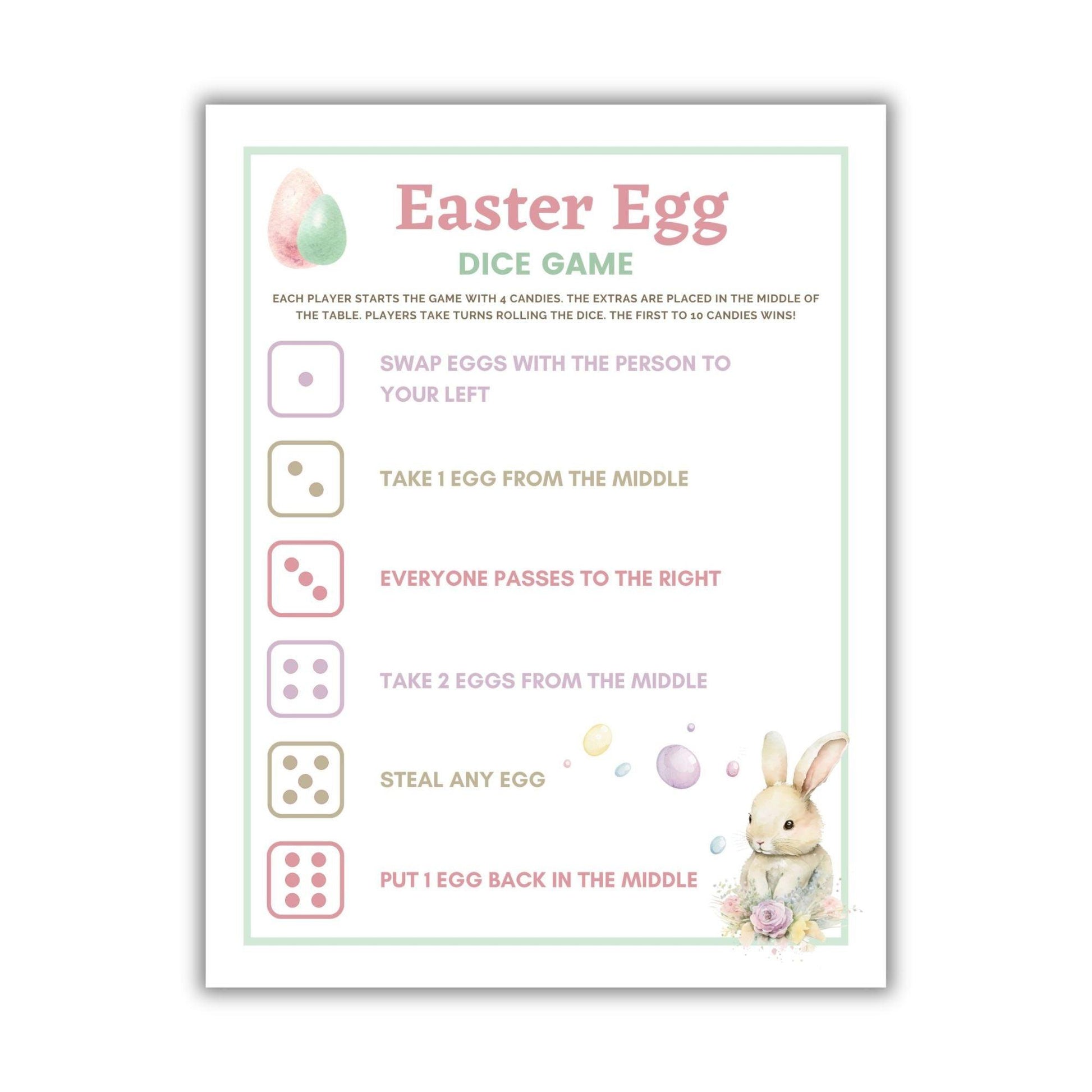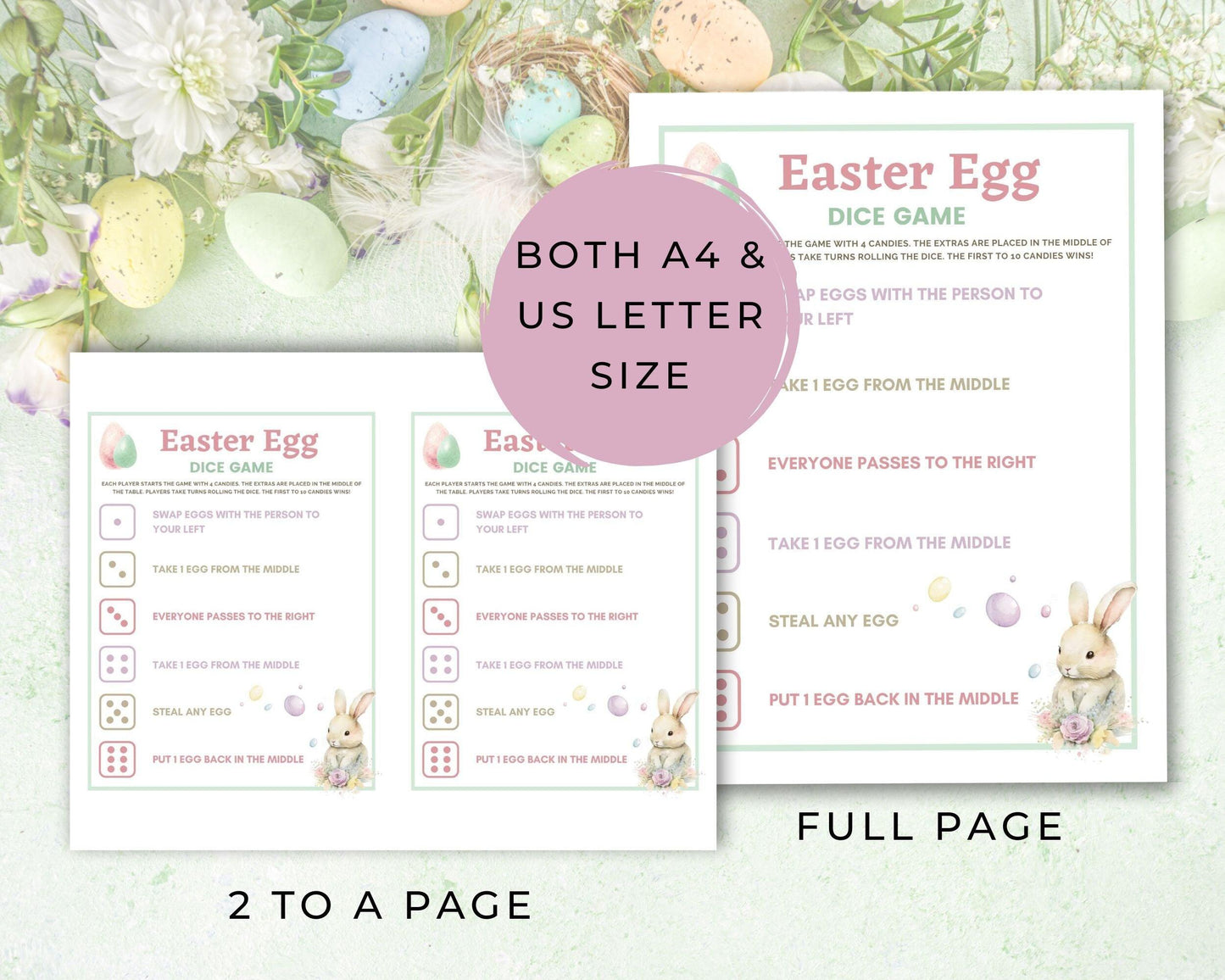 ► 1 FULL PAGE EASTER DICE GAME PRINTABLE IN A4 & US LETTER SIZE