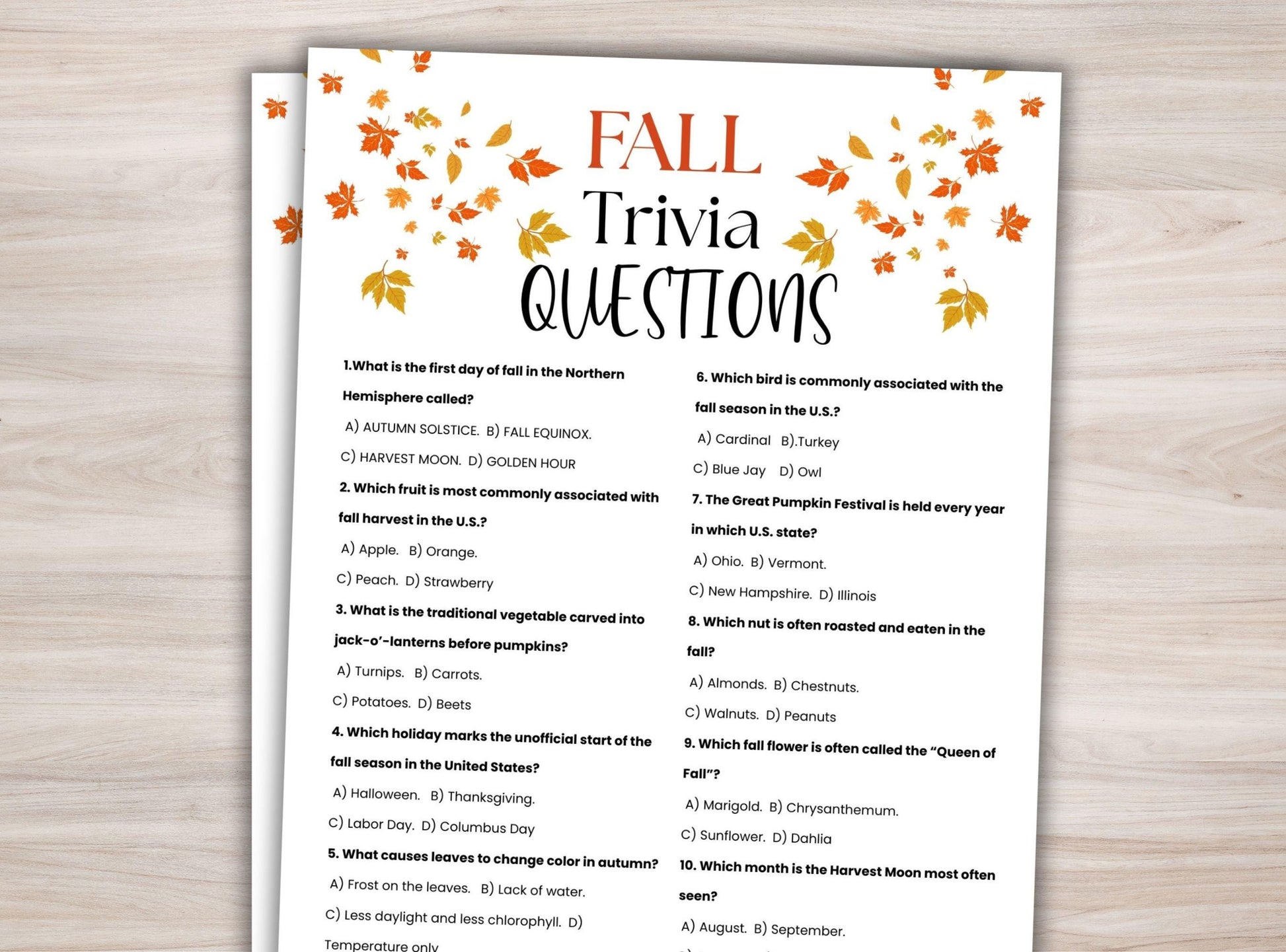 If you're looking for a fun Fall game or Thanksgiving party game for a group, this Fall trivia game is always great fun! This simple Autumn trivia game has 10 Fall questions to challenge your friends and family. This is a perfect Thanksgiving dinner game or a Fall classroom game