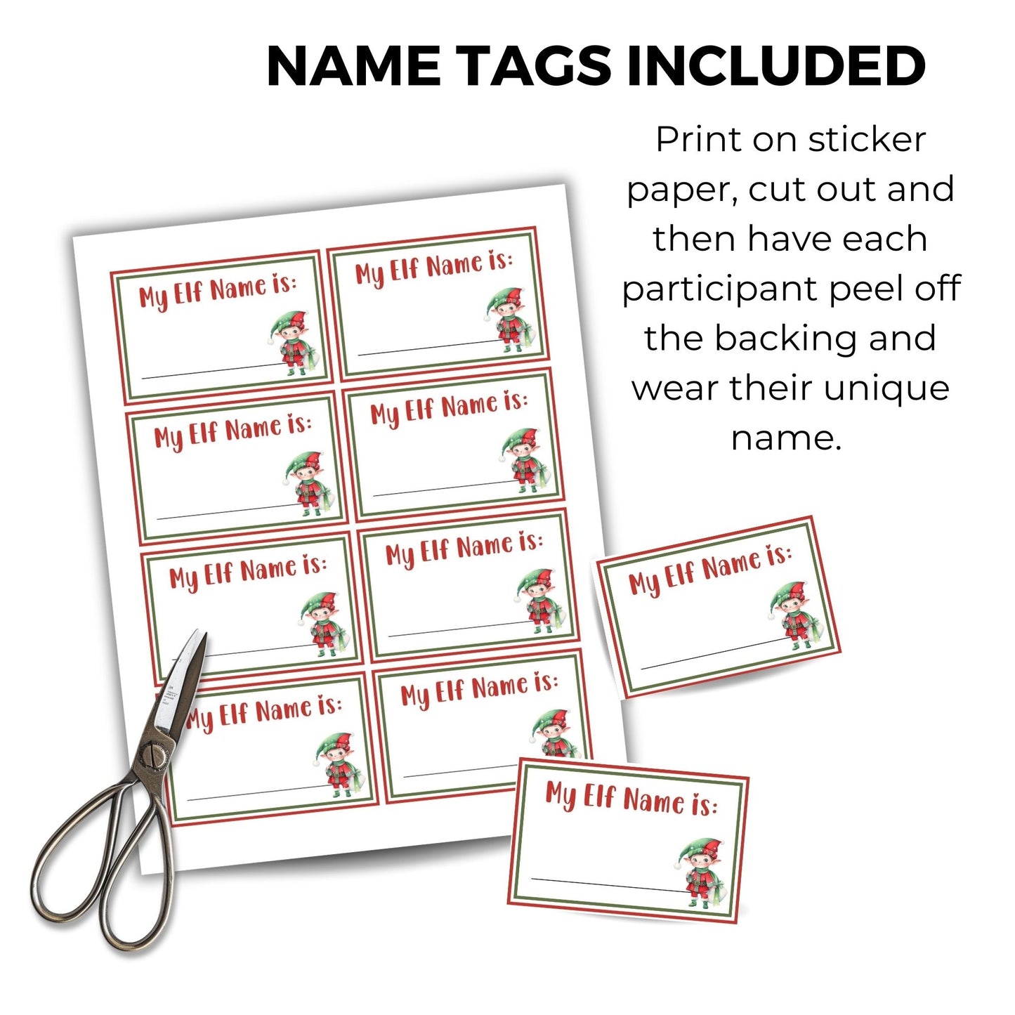 Add extra fun to your Christmas party with this What's Your Elf Name game. This is a simple printable Christmas party game that can be fun for all ages. The Christmas game comes with printable name tags and a sign to display if setting up at a party or event.