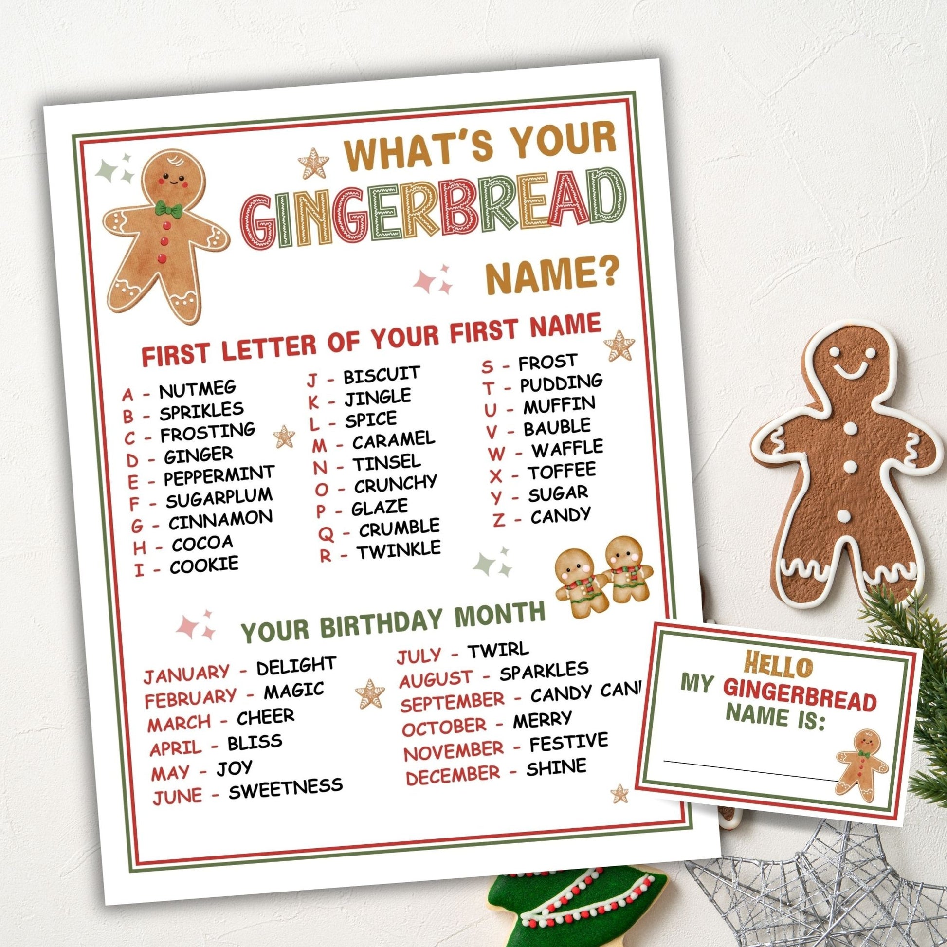 Add extra fun to your Christmas party with this What's Your Gingerbread Name game. This is a simple printable Christmas party game that can be fun for all ages. The Christmas game comes with printable name tags and a sign to display if setting up at a party or event.